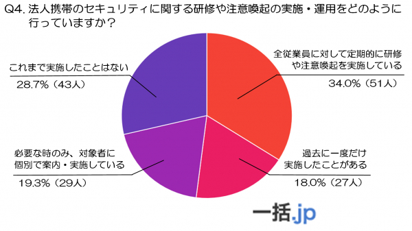 調査結果4:法人携帯のセキュリティに関する研修や注意喚起の実施・運用をどのように行っていますか?