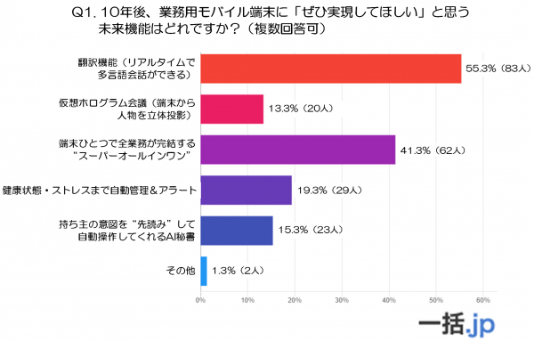 調査1: 業務用モバイル端末に「ぜひ実現してほしい」と思う未来機能は?