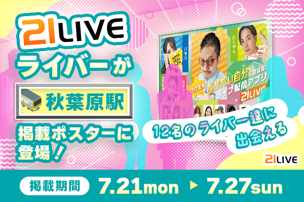 7月21日(月)からの1週間限定で、秋葉原駅構内にて21LIVEの特別広告ポスターを掲出します。