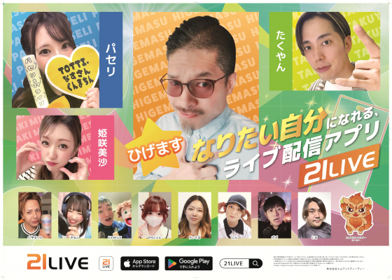 ポスターに掲載しているライバーの配信は、21LIVEのアプリ・サイトでご覧いただけます。