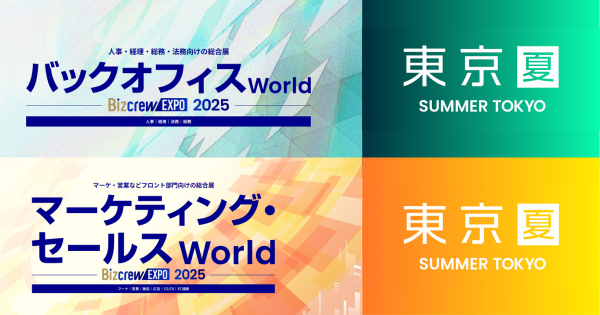 「バックオフィス World/マーケティング・セールス World 2025 夏 [東京] 」は、人事・経理・総務・法務向けのサービス・ソリューションが一堂に集うバックオフィス向けの総合展とマーケティング・営業などフロント部門向けのサービス・ソリューションが一堂に集う総合展です。