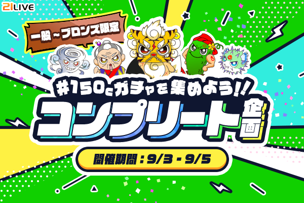 【21LIVE】9月3日(水)より『150Cガチャを集めよう!!コンプリート企画』開催!キャラを集めてオリジナルグッズをゲットしよう!