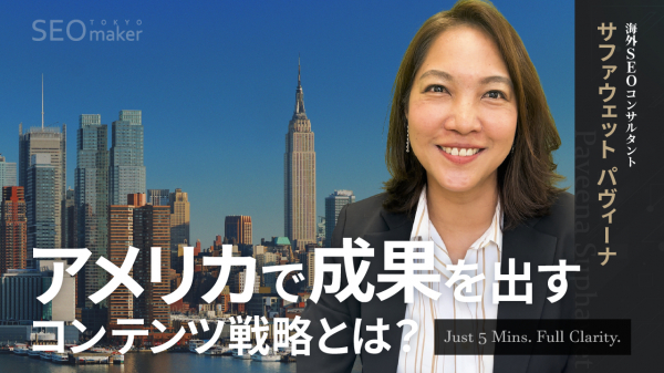 今回公開したYouTube動画では、東京SEOメーカーの海外SEOコンサルタントである サファウェット・パヴィーナ(社内では“チェリー”) が、アメリカ市場に特化したSEOコンテンツ戦略を5分でわかりやすく解説しています。