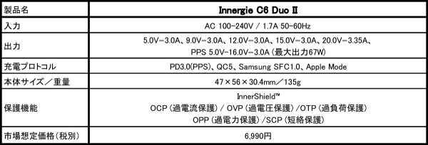 【Innergie C6 Duo II販売サイト】