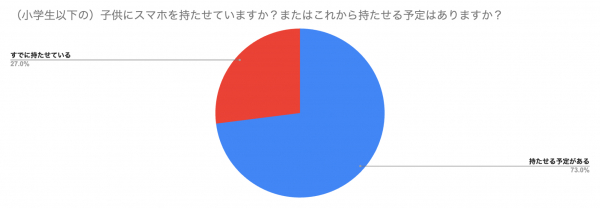 子供のスマホに関するアンケート調査の結果、スマホを「持たせる予定がある」が73.0%となり、「すでに持たせている」は27.0%という結果でした。