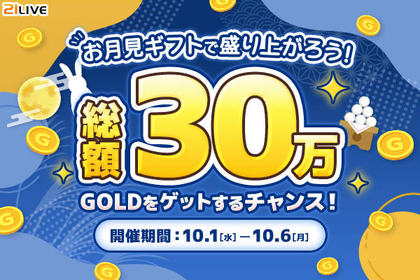 【21LIVE】秋の特別イベント『お月見ギフトで盛り上がろう!総額30万GOLDをゲットするチャンス!』開催!上位入賞者にGOLDをプレゼント!さらに、21位は特別報酬も♪
