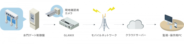 今回の実証実験において、既存の水門ゲート操作盤に後付けでエコモット製のIoT接点・画像伝送端末「GLANIX LTE」を組み込むことで、安価かつ容易に遠隔操作を実現します。このシステムにより、操作員は遠隔地から安全に水門を開閉できるようになり、緊急時の迅速な対応が可能となります。加えて、移動にかかる時間やコストの削減効果も期待できます。