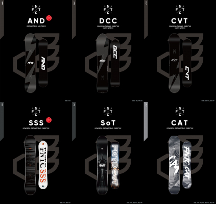 FNTCは「遊び心を刺激するスノーボード」をテーマに、日本人ライダーの企画と世界トップクラスの技術を融合した製品を展開するブランドです。プロライダー瀧澤憲一、山本純士、岸波秀樹らとの共同開発を通じて、常に進化を続けています。