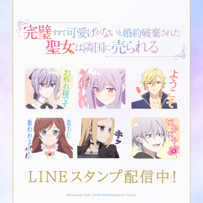 TVアニメ『完璧すぎて可愛げがないと婚約破棄された聖女は隣国に売られる』初となるLINEスタンプがインクルーズより配信開始!