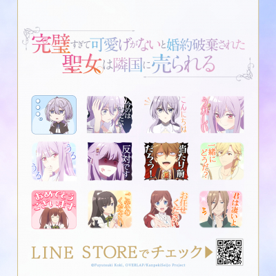 TVアニメ『完璧すぎて可愛げがないと婚約破棄された聖女は隣国に売られる』初となるLINEスタンプがインクルーズより配信開始!是非、LINEスタンプでもTVアニメ『完璧すぎて可愛げがないと婚約破棄された聖女は隣国に売られる』の世界観をお楽しみください。