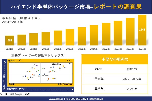 SDKI Analytics(本社:東京都渋谷区)は、このたび、2025年10月16「ハイエンド半導体パッケージ市場調査レポート:2025−2035年の市場規模、シェア、傾向の予測」を発表しました。ハイエンド半導体パッケージに関する市場調査レポートには、統計的及び分析的アプローチを使用した予測評価が含まれています。この調査レポートでは、一次及び二次調査方法を使用して分析された主要な業界洞察を通じて将来の傾向を理解できるようにすることで、主要な市場動向を読者に説明しています。
