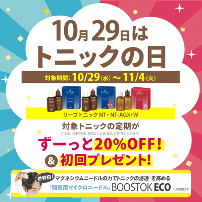 10月29日は「トニックの日」“頭皮を大切に”啓蒙のため リーブ21公式通販サイト「リーブ直販」で特別キャンペーン開催 対象トニックの定期便がずっと20%OFF & 初回限定プレゼントも