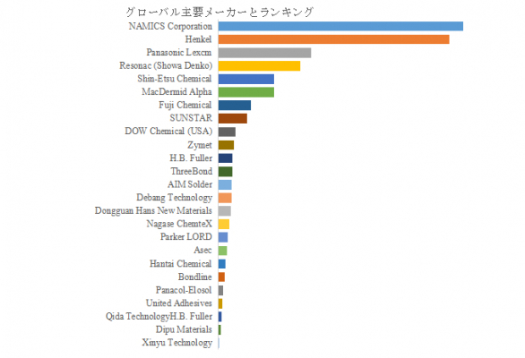 現在、世界の半導体アンダーフィル市場は上位企業による寡占構造が形成されている。LP Informationによると、2024年時点で上位10社が全体の約73%の市場シェアを占めている。主な企業には、NAMICS Corporation、Henkel、Panasonic Lexcm、Resonac(旧Showa Denko)、Shin-Etsu Chemical、MacDermid Alpha、SUNSTAR、Fuji Chemical、DOW Chemical、Zymetなどが挙げられる。これらの企業はそれぞれ独自の配合技術、ナノフィラー制御、熱伝導性改良技術などを強みに、市場でのプレゼンスを確立している。
