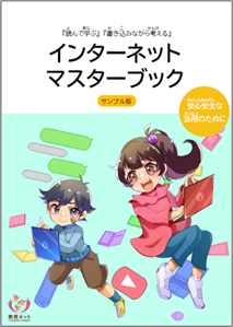 『インターネットマスターブック』は、GIGA端末や家庭でのインターネット利用について、4コママンガなどを通して楽しく学びながら、自分自身のルールや考えを書き込める全16ページの冊子教材です。