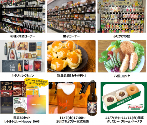 リニューアルオープンを記念して、お得な商品の販売や試食販売などの企画を実施します。レトルトカレーHappy BAGや、クリスピー・クリーム・ドーナツ限定販売、地元埼玉県の氷川ブリュワリーなどご当地メーカーによる試飲販売も実施いたします。