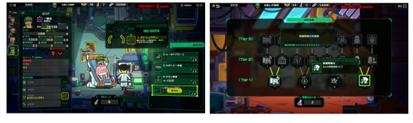 兵士に身体改造を施すことでステータスを強化したり、新たなコマンドスキルを習得させることができます。さらに「ゲノム編集」で遺伝的特性を付与し、能力値を大幅に底上げすることも可能です。基地内の「研究棟」では、さまざまな研究を進めることで部隊全体に永続効果を付与できます。