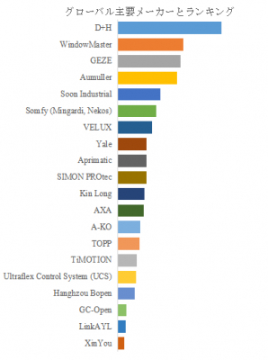 市場競争は寡占的な色彩を帯びており、トップ企業の影響力が際立っている。2024年時点で世界上位10社が売上の約49.0%を占め、さらにトップ5社では全体の78%に達している。代表的な企業にはD+H、WindowMaster、GEZE、Aumuller、Somfy、VELUX、Yaleなどが挙げられ、それぞれが地域市場で強固なブランド力を築いている。特に欧州系メーカーは品質基準や安全規格において世界的な優位性を確立しており、一方アジアのメーカーはコスト競争力と生産能力の高さを武器に市場拡大を図っている。このような競争構造は、単にシェアの奪い合いではなく、技術革新や製品多様化を通じた市場全体の高度化をもたらしている。また、商業建築の需要拡大、公共インフラへの導入政策、そしてスマートシティ構想との連動が、新規参入者や既存企業の成長戦略を加速させているのである。