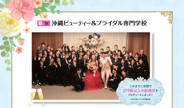 沖縄ビューティー&ブライダル専門学校(学校法人三幸学園)ブライダル科では、2025 年 2 月 15日(日)、学生主体による実践型授業「ウエディングプロデュース」を実施いたします。※沖縄ビューティー&ブライダル専門学校 https://www.sanko.ac.jp/okinawa-beauty/