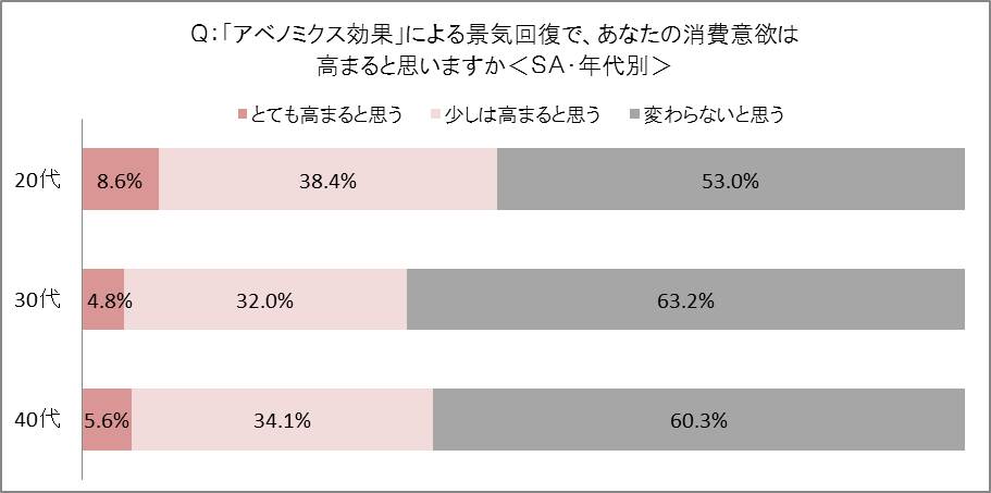 【グラフ:<年代別>「アベノミクス効果」による景気回復で、あなたの消費意欲は高まると思いますか】