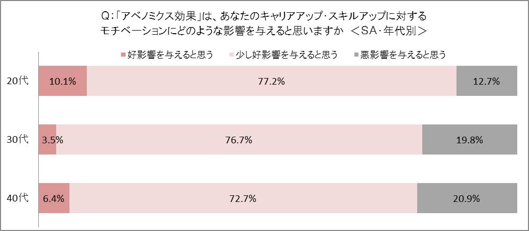 【グラフ:<年代別>「アベノミクス効果」は、あなたのキャリアアップ・スキルアップに対するモチベーションにどのような影響を与えると思いますか】