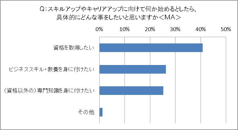【グラフ:スキルアップやキャリアアップに向けて何か始めるとしたら、具体的にどんな事をしたいと思いますか】