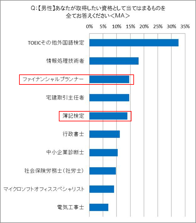 【グラフ:<男性>あなたが取得したい資格として当てはまるものを全てお答えください】