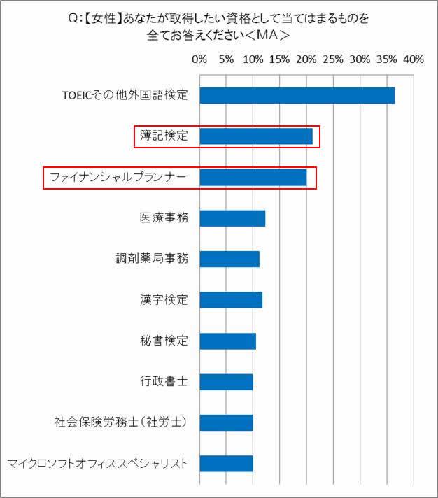 【グラフ:<女性>あなたが取得したい資格として当てはまるものを全てお答えください】