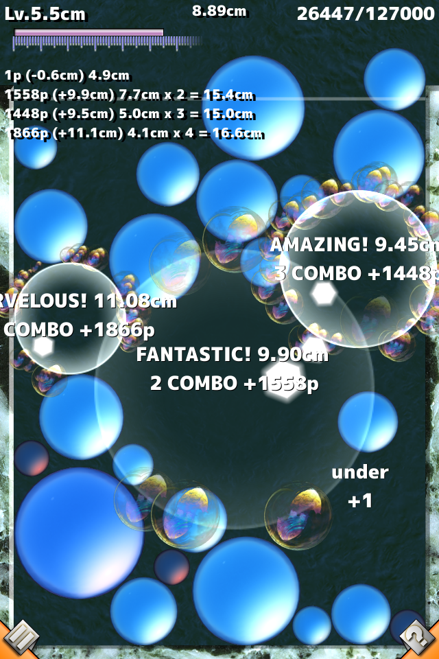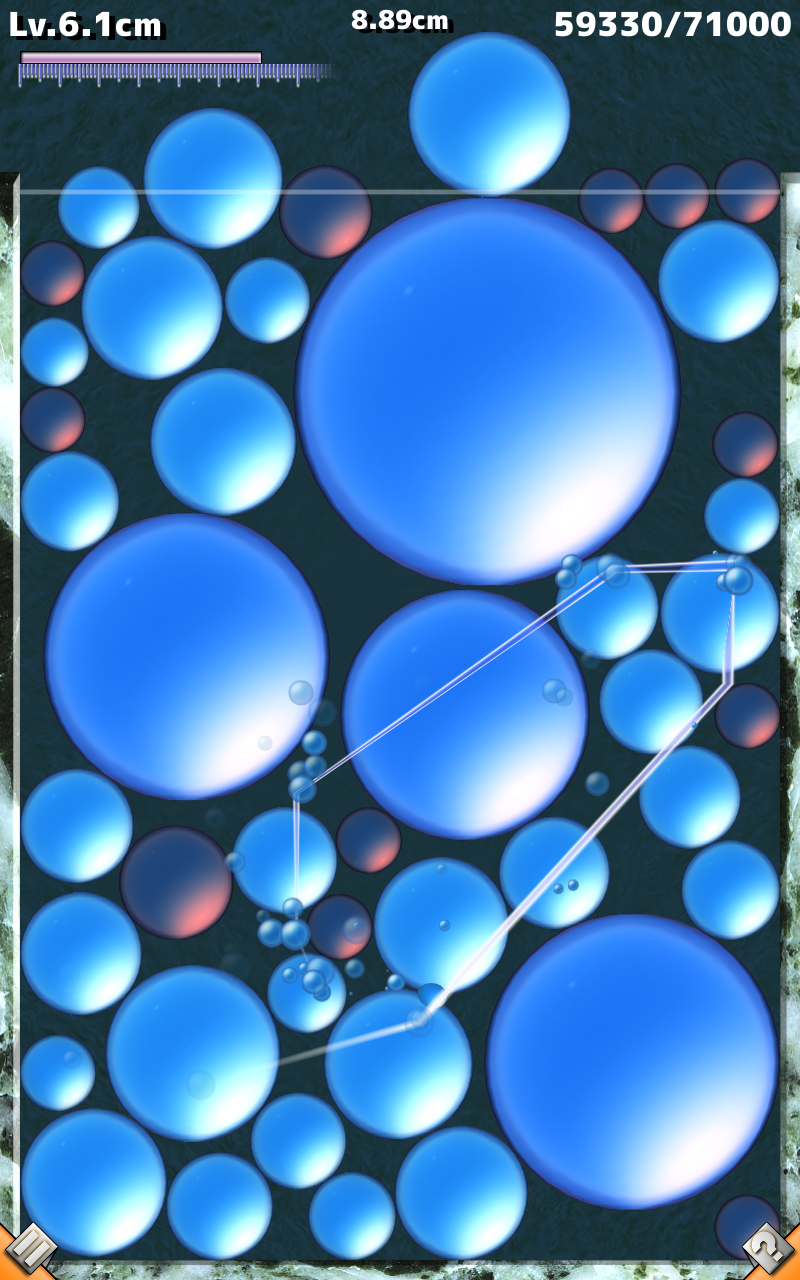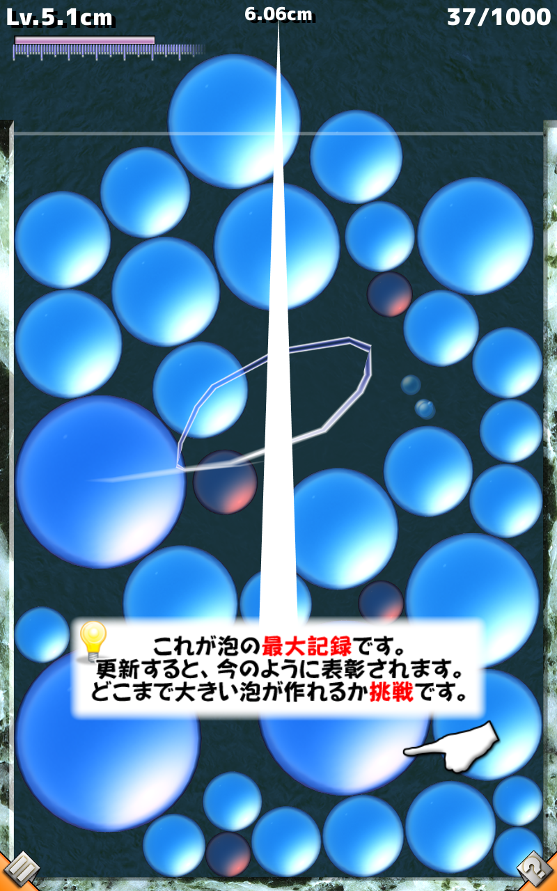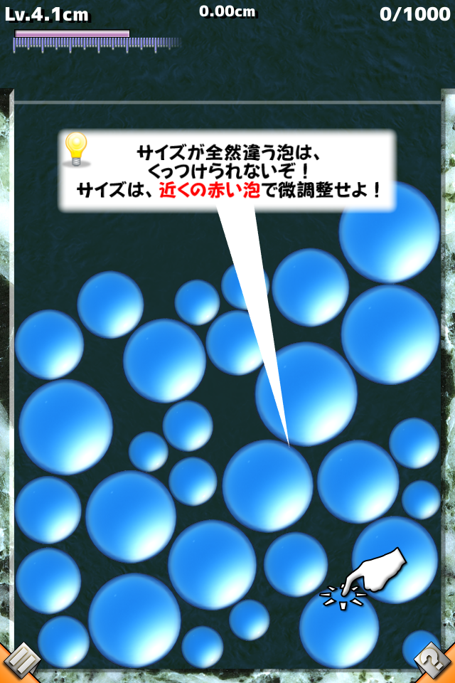 泡を割るとポイントが貯まり、段々とレベルアップしていきます。