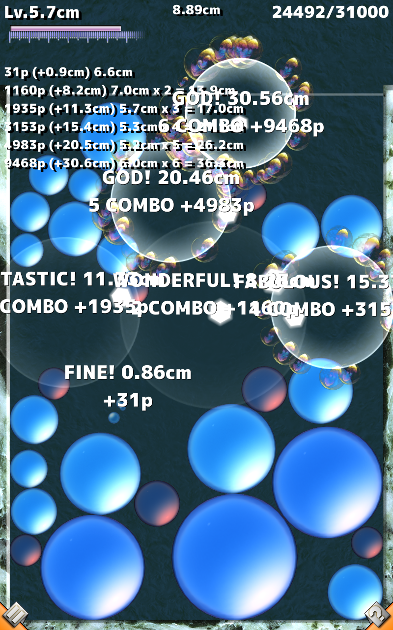 更に割った時に発生する波紋で近くの泡も連続して割ることが出来ます。