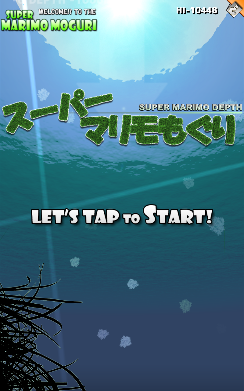 海中に沈みゆく毬藻を育てながら、瓦礫を避けてどれだけ深く潜れるかを競う新感覚マリモもぐりゲーム。 スマートフォン用ゲームアプリ、"スーパーマリモもぐり"公開
