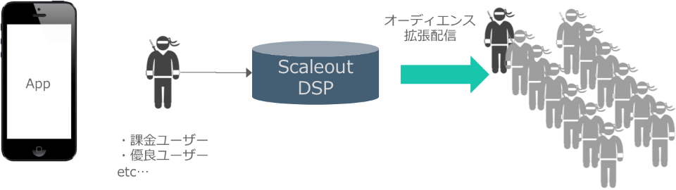 ・自社タイトルの課金ユーザー群データを元に、拡張配信