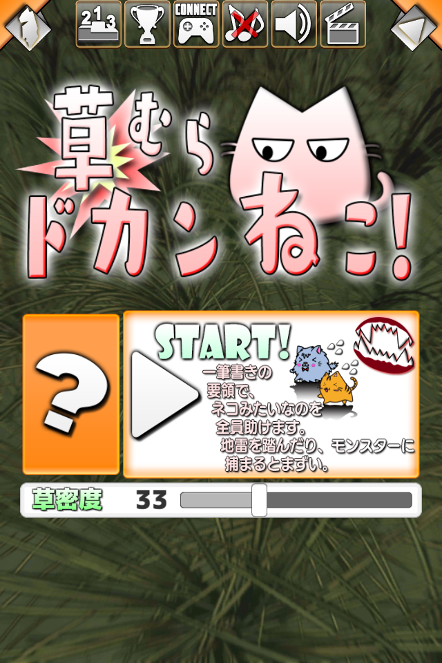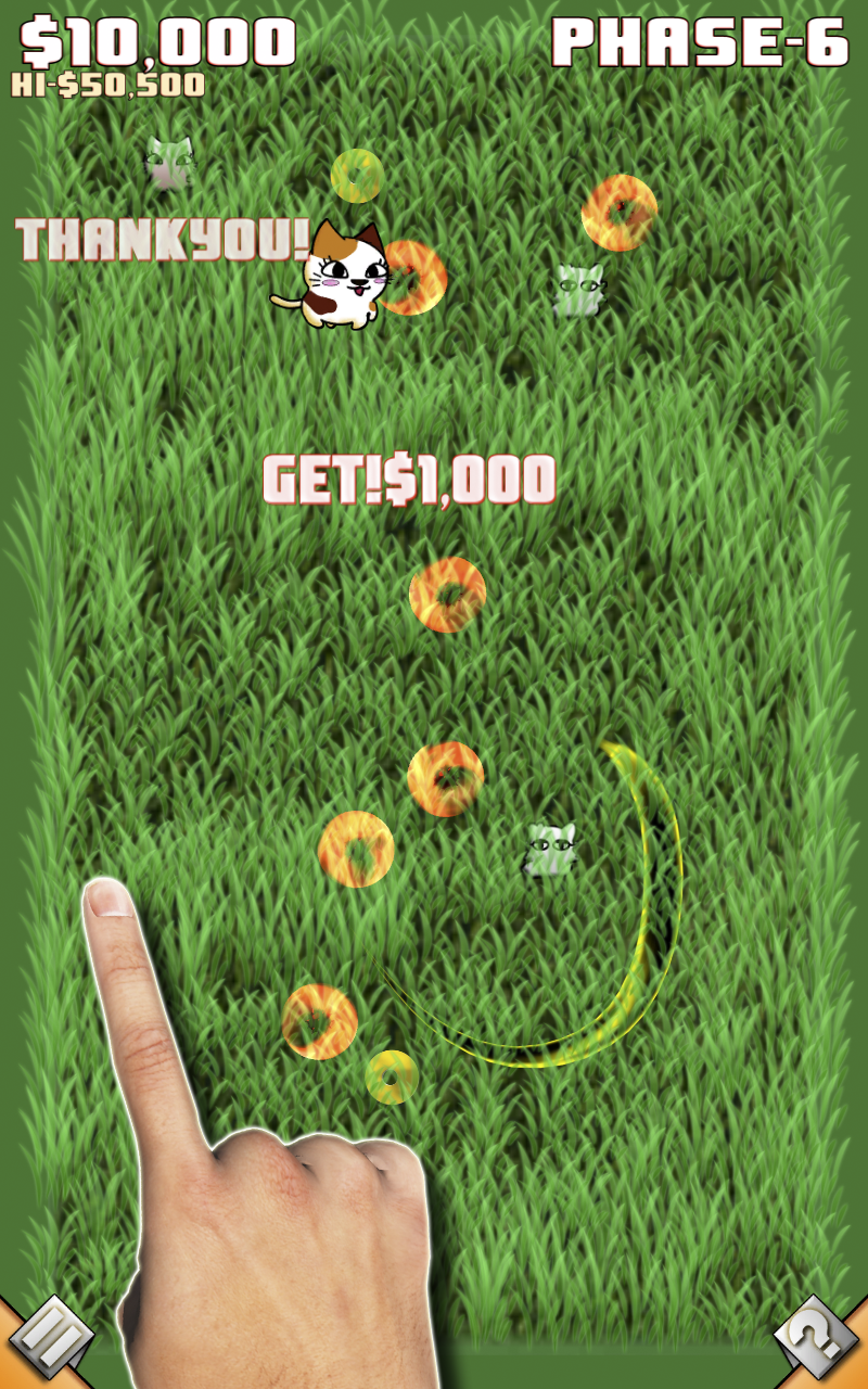 草むらに迷い込んだネコ?をタップで助けてあげましょう! スマートフォン用ゲーム、"草むらドカンねこ!"公開