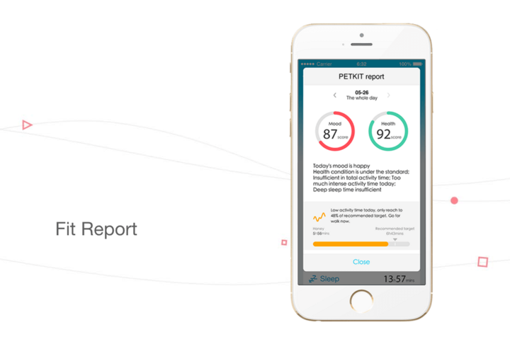 活動状況に応じて”今日の気分は上々です♪” といった気分インデックスの表示や「健康状態が少し良くない可能性があります」、「総活動時間が不十分 / 今日は激しい活動時間がありました / 深い睡眠時間が足りません。」等のレポートを提供可能。ペットの活動を24時間連続して検出しクラウド連携していることで、統計化されたデータの中から変化を察知しすることできる為です。