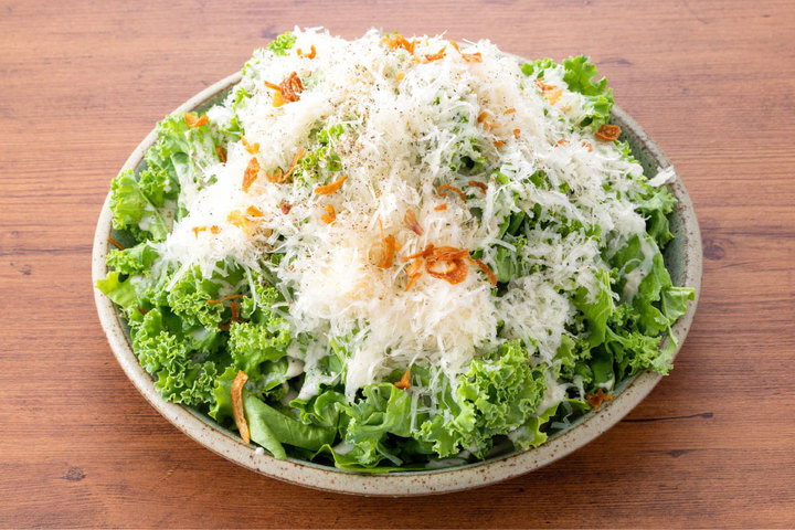 栄養豊富なケールをふんだんに使った人気のサラダ。フワッフワのチーズと一緒にお召し上がりください。