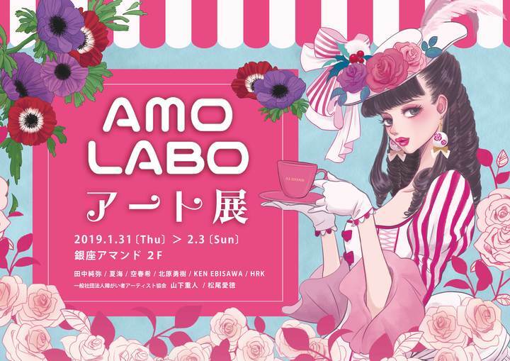 株式会社AMOLABO(東京都港区六本木7-9-3 第一韮澤ビル3F/代表取締役:坂和 香織)は、才能溢れる芸術家を集めた第1回『アモラボアート展』を、2019年1月31日(木)〜2019年2月3日(日)、日本で初めてアートを壁に飾った歴史を持つアマンド銀座店(株式会社アマンド/東京都港区西新橋2-34-4/代表取締役社長:茂田 優)にて開催する。一般社団法人障がい者アート協会(埼玉県入間市小谷田656-2 GC1F-1/代表理事:熊本 豊敏)からも2名の芸術家の作品を展示。