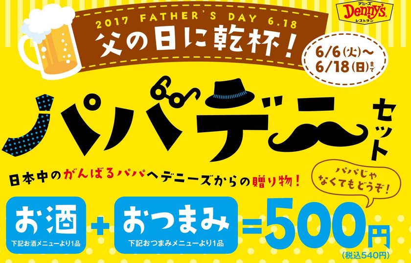 デニーズは父の日を忘れません!父の日に乾杯!【パパデニセット】販売 2017年6月6日(火)〜2017年6月18日(日)