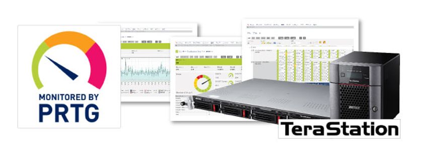 「PRTG Network Monitor」は「テラステーション」を監視するための専用の監視機能を装備しており、SNMP、WMI、S.M.A.R.T.情報による監視にも対応しています。「PRTG Network Monitor」を使用することで、バッファロー製品以外のネットワーク機器を含む環境下において「テラステーション」を含めたネットワーク・サーバーなどネットワーク機器の一元管理が可能になり、ネットワーク管理者は企業のニーズに合わせた機器選定が可能になります。