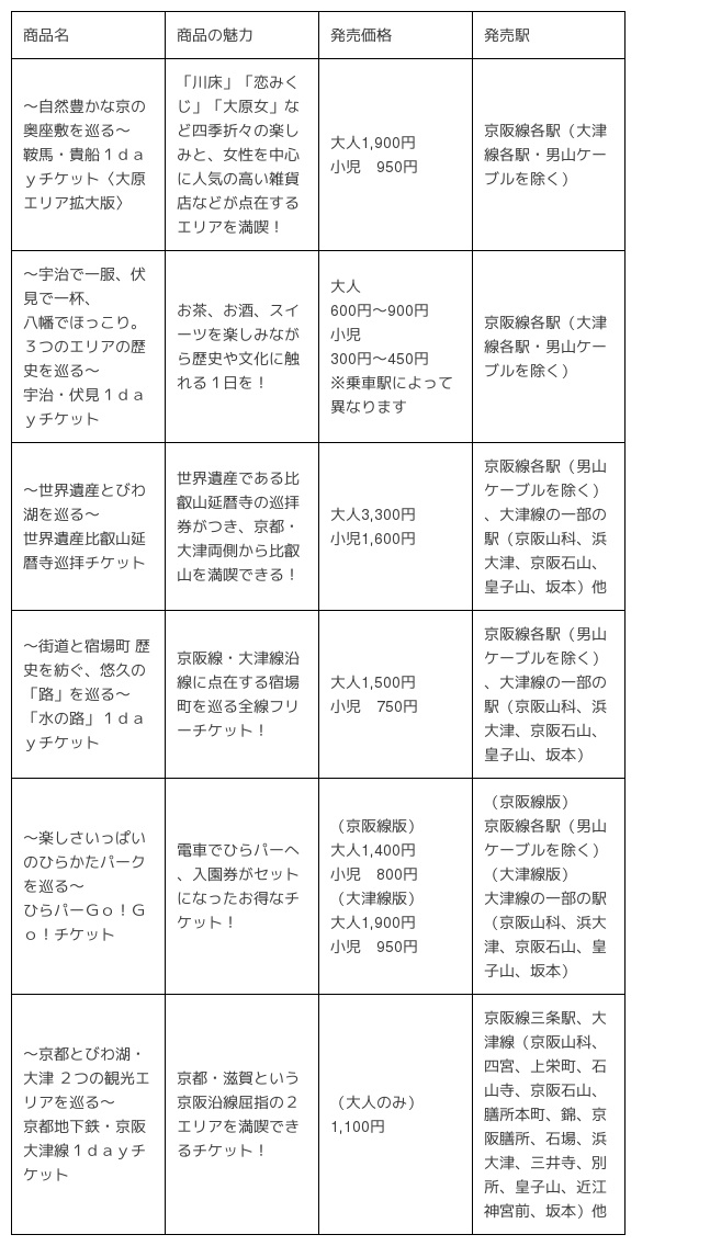 ※詳しくは、京阪電車のホームページ( http://www.keihan.co.jp/traffic/valueticket/ )または、京阪電車各駅に設置している「ぶらり、京阪たび。」パンフレットをご覧ください