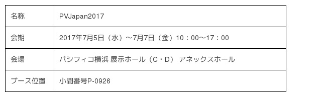 太陽光発電のイベント「PVJapan2017」出展のご案内