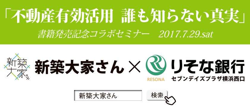 新築大家さん×りそな銀行 書籍発売記念コラボセミナー『不動産有効活用 誰も知らない真実』を7月29日に開催