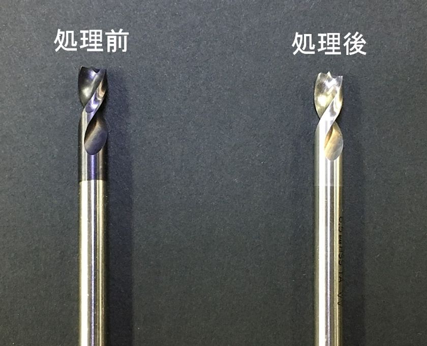 TiAlN膜は、TiN膜に比べて耐摩耗性や耐熱性の向上に効果的であることから切削工具・精密金型・治工具等に幅広く採用されています。また、硬質皮膜の成膜工程で不良を生じた規格外品や欠陥品、使用過程で硬質皮膜が磨耗して寿命に達した寿命劣化品は廃棄せず再コーティングすることでリユースすることができます。切削工具・精密金型・治工具等の再生利用を行うためには、薬液で元のコーティング膜を除膜する必要があります。その際、除膜に長い時間を費やすことや、除膜剤の寿命が保たず新液更新の頻度が早いなど、作業時間や薬液コストが課題となっておりました。