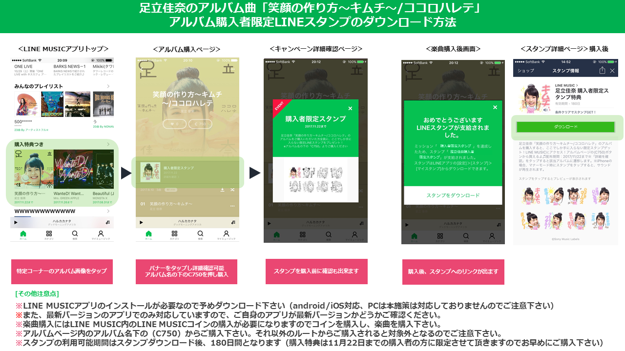 この度、2017年7月11日よりダウンロード販売がスタートしたことを記念し、特定の楽曲を購入したユーザーに、アーティストの特製LINEスタンプをプレゼントするキャンペーンを開始しました*1。
