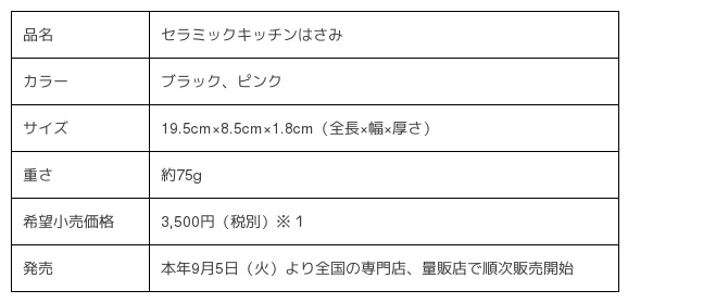 京セラ株式会社(社長:谷本秀夫)は、セラミックキッチン用品の新商品として「セラミックキッチンはさみ」の改良版を商品化し、本年9月5日(火)より全国の専門店、量販店で順次販売開始しますのでお知らせいたします。