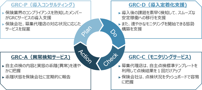 今回の業務提携は、両社がそれぞれの得意分野と経営資源を活用し、保険業界および代理店業界向けにコンプライアンスに特化したワンストップソリューション群を提供することで、コンプライアンス態勢管理業務の効率化・簡素化・高度化および募集体制の適正化の実現に貢献していきます。