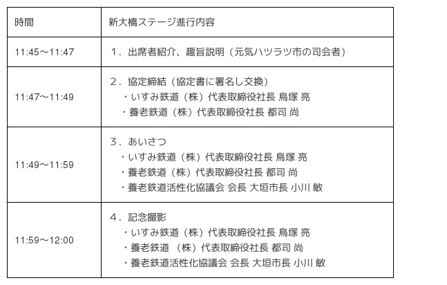 これは、いすみ鉄道の本社がある千葉県大多喜町が名所「養老渓谷」を有し、養老鉄道が沿線に「養老の滝」を有することから、「養老つながり」として提携するもので、2017年が日本の元号が「養老」に改元されて1300年目を迎える年であることにちなみ、両鉄道が地域住民の大切な移動手段として存続していくとともに、貴重な地域資源として愛され利用してもらうための各種活性化策等に連携して取り組んでいくことを目的としています。