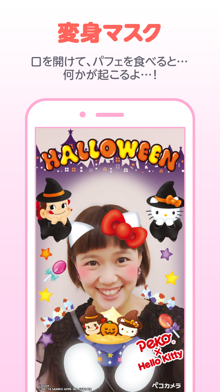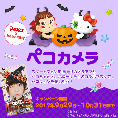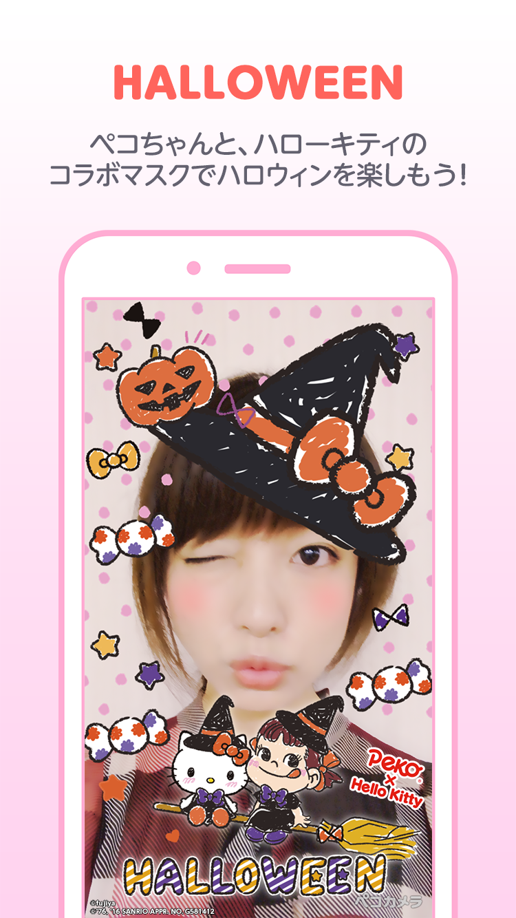 ペコちゃんと、ハローキティの自撮りカメラでハロウィンを楽しもう!