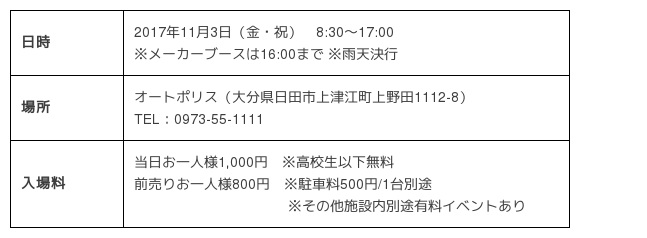 株式会社オートバックスセブン(代表取締役 社長執行役員:小林 喜夫巳)は2017年11月3日(金・祝)、大分県にあるサーキット『オートポリス』にて「モータースポーツフェスタ2017 in オートポリス」を開催いたします。