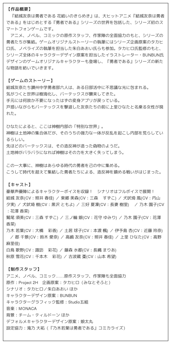 『結城友奈は勇者である 花結いのきらめき』基本情報
