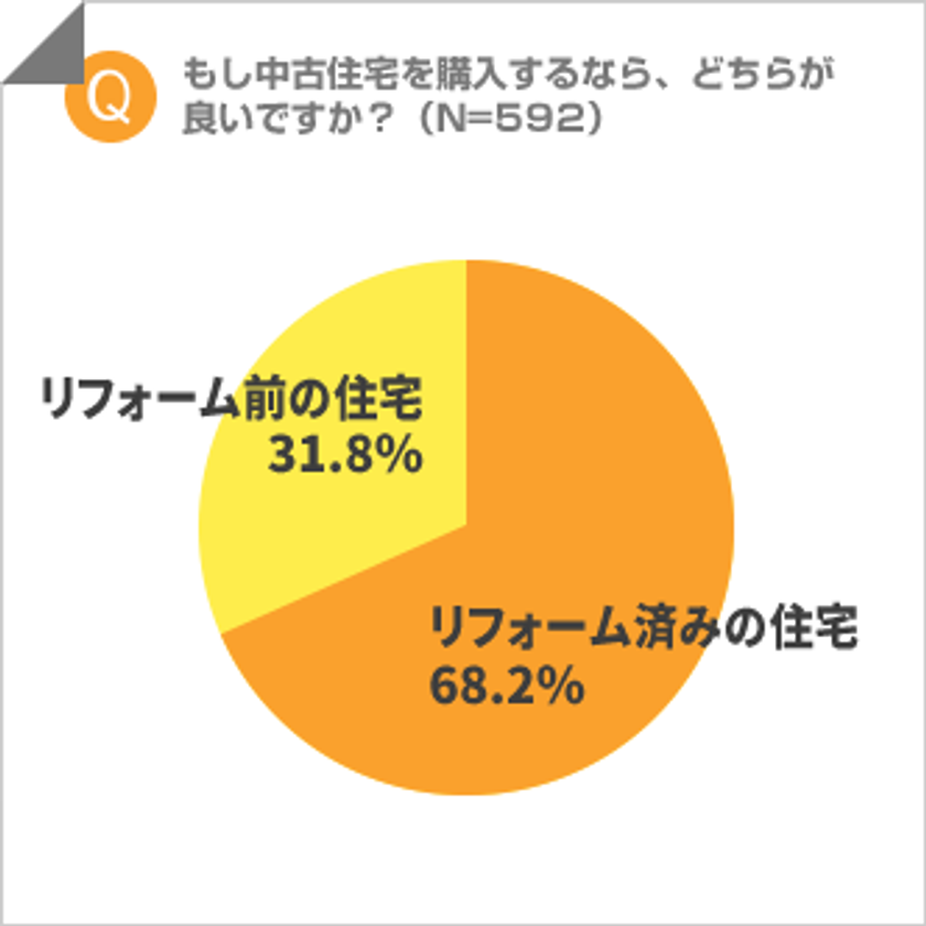 【調査】中古住宅買うなら?買い手側の本音は・・・リフォーム済みの方が良い68.2%!リフォーム前住宅希望者は財布のひもが固い?