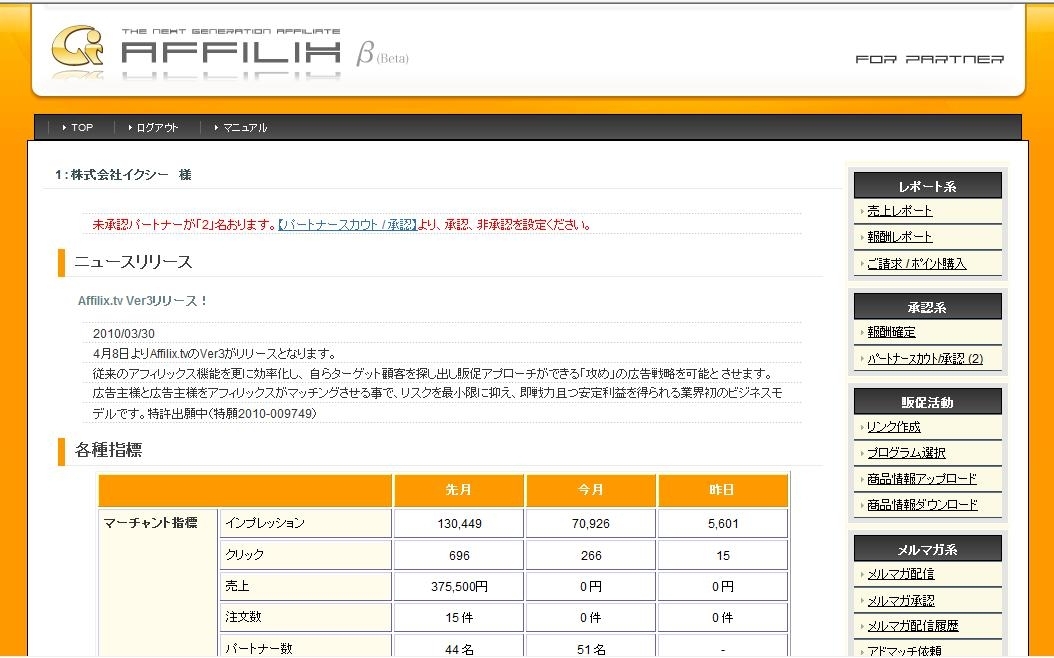 ネットショップの運営およびシステム開発事業を行う株式会社イクシー(本社:東京都港区、代表取締役:上田 響)は、2010年4月22日、ネットショップに向けてIAS(情報資産共有)型次世代アフィリエイトサービス「affilix.tv(アフィリックス ドットティーヴィー)」のβ3版(以下、「アフィリックス」)をリリースし、一部の顧客向けに運営を開始します。